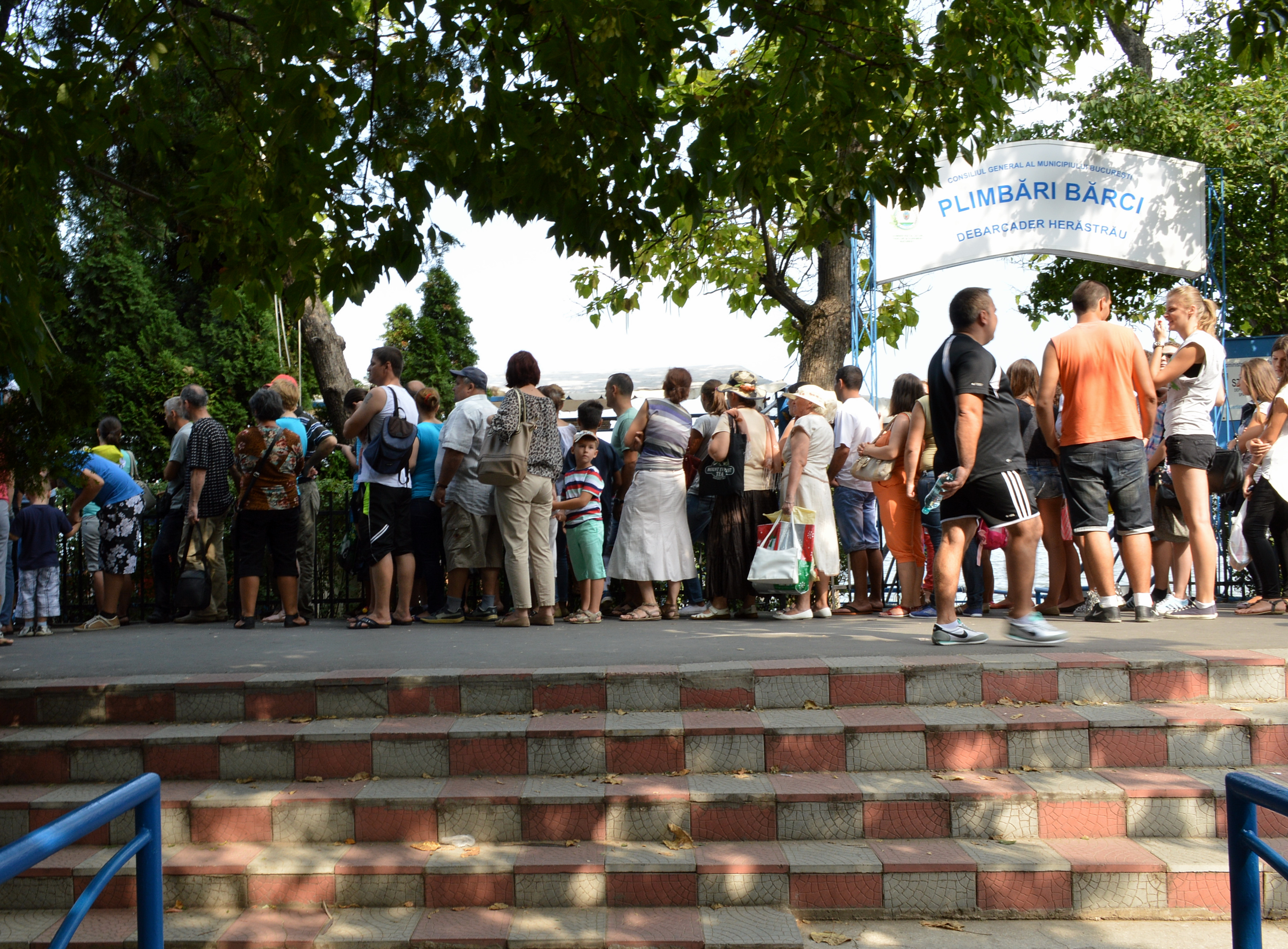 Joi, 15 august, am intrat si eu, oficial, in categoria “profitorilor”. Pana la acea data, evitam cu obstinatie astfel de “oportunitati”, pentru ca nu agreez aglomeratia, nu am rabdare sa astept ore in sir, prefer sa platesc biletul intreg sau sa cumpar un obiect la pret initial, sa vizitez un loc sau sa merg la shopping in conditii decente, si sa am o oarecare certitudine ca obtin ceva de calitate. Insa, acum a fost diferit, de indata ce am aflat din aplicatia mea favorita “presaonline.com” ca plimbarile cu vaporasul sunt gratuite, in Herastrau, dupa ora 12, cu ocazia Zilei Marinei, am fost curioasa sa merg si eu sa vad cum e. Bine, mizam pe faptul ca toti bucurestenii sunt in vacanta, la mare sau la munte, iar eu voi fi sigurul locuitor ramas in oras si sigurul doritor de o croaziera pe lac. Si pana sa ajung la debarcader, am fost tentata sa cred ca mi-am imaginat corect, aleile parcului fiind pustii. Evident, de vreme ce toata lumea era la coada, nerabdatoare sa atinga mai repede puntea vaporasului.