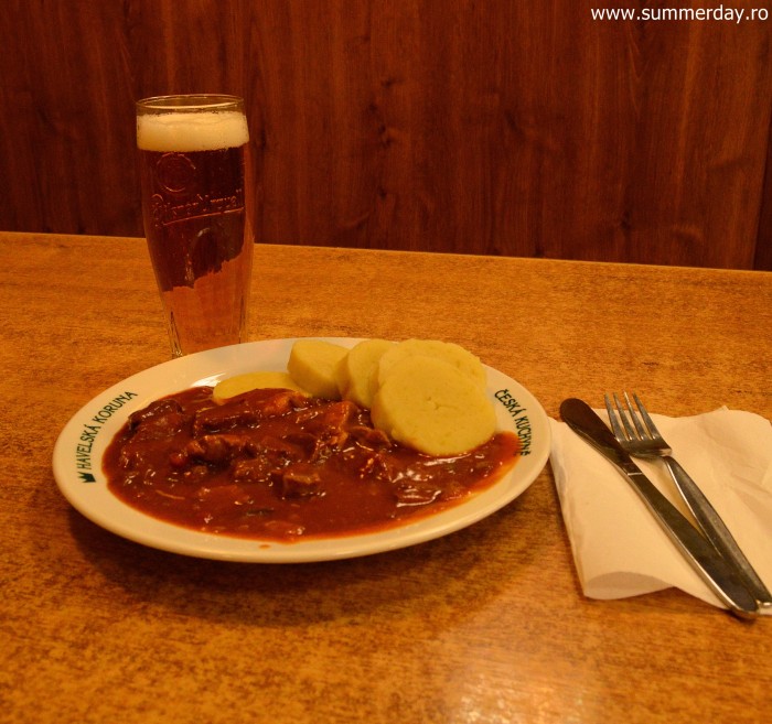 Cea mai gustoasă mâncare încercată în Praga: gulaș (de vită și porc) cu găluște de cartofi. Berea e de decor, nu am putut s-o beau.