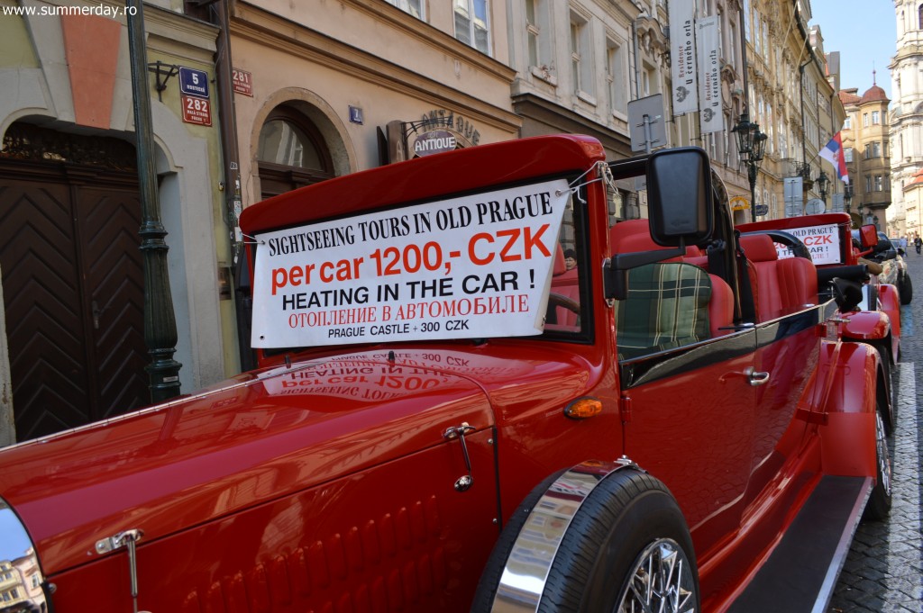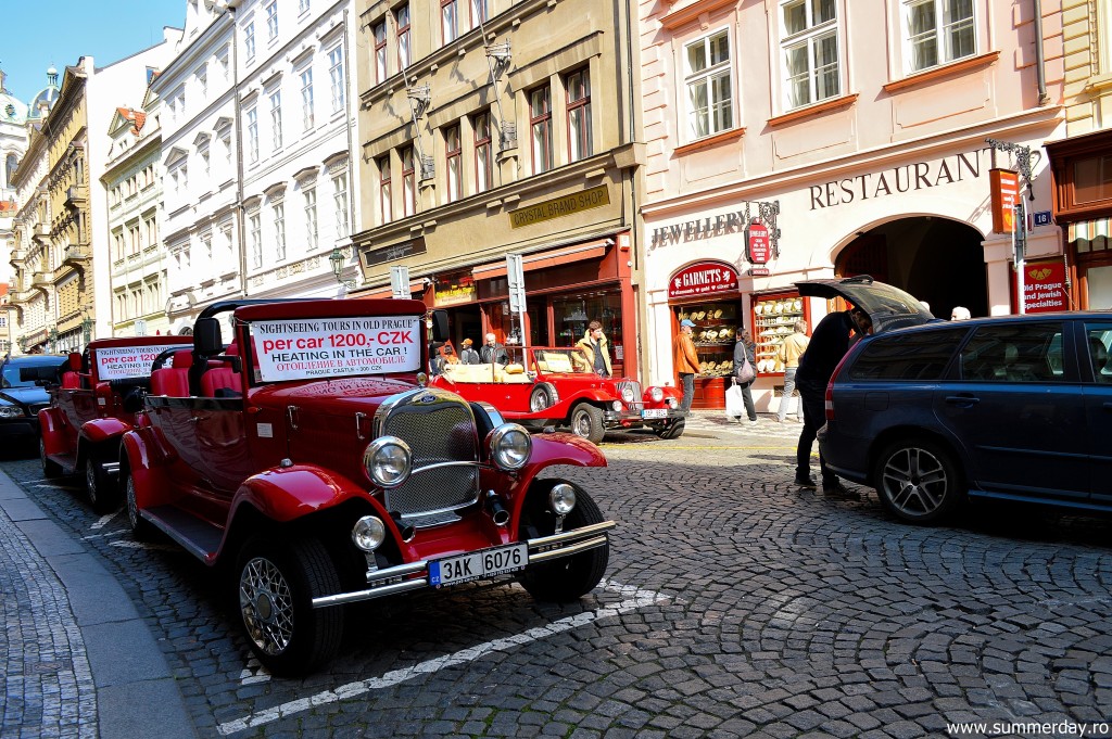 Dacă vreți să simțiți atmosfera boemă a anilor ’20, în Praga e posibil. Pentru 1200 CZK (adică pentru cca 200 de lei) puteți închiria o mașină veche și să porniți într-un tur al centrului istoric. Călătoria durează de la 30 de minute până la o oră.